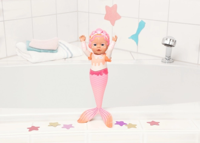 Objevte kouzelný svět mořských příběhů s panenkou BABY BORN My First Mermaid. Je lehká, příjemně tvarovaná pro dětské ruce a vyrobena z kvalitních materiálů vhodných pro vodní hrátky. Ve vaně i mimo ni se stane oblíbenou společnicí pro malé milovníky mořských pohádek.