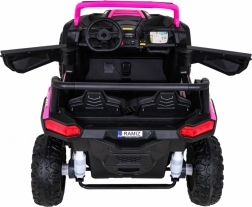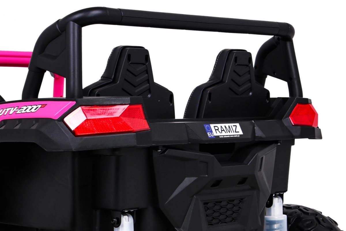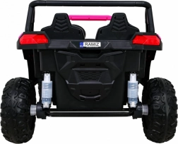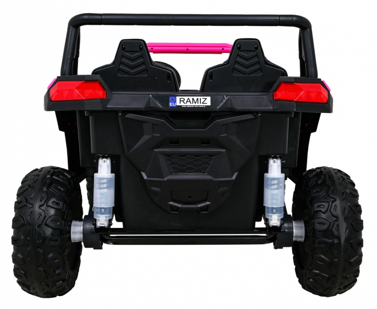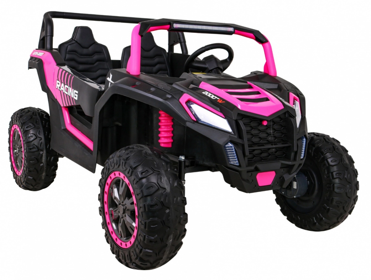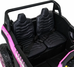 Toto terénní elektrické buggy je stvořené pro dobrodružství ve dvou. Díky pohonu všech kol 4x4 a velkým EVA kolům s hlubokým vzorkem zvládne nerovný terén a nabídne plynulou jízdu. Sedadlo z ventilované eko kůže s 3stupňovým nastavením posunu, bezpečnostní pásy a pomalý rozjezd zajišťují pohodlí i bezpečnost.