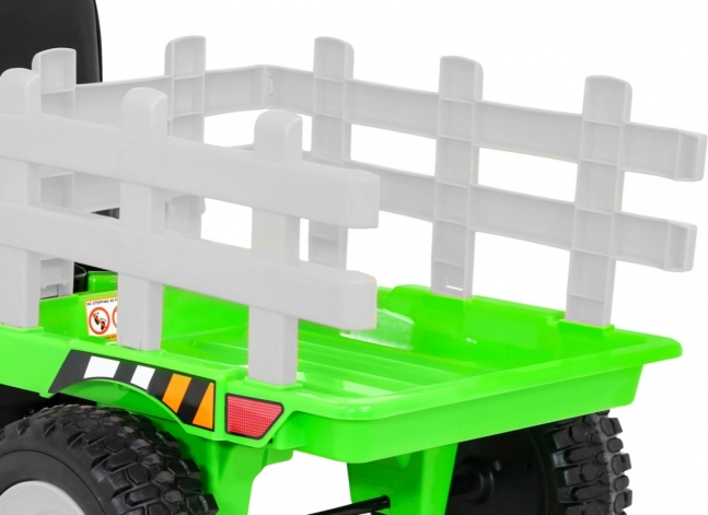 Přívěs připojený k traktoru poskytuje prostor pro uložení malých předmětů a zvyšuje realismus a zábavu během venkovní hry.