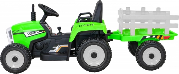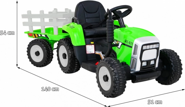 Traktor je vybaven dvěma silnými motory o síle 25 W, které zajišťují snadnou manipulaci a dlouhotrvající zábavu při jízdě.