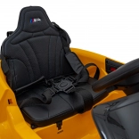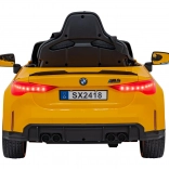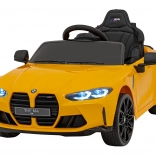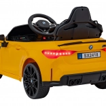 Stylové elektrické autíčko BMW M4 v zářivě žluté barvě nabídne dětem realistický zážitek z jízdy. Má 2x35 W motory, 12V/7Ah baterii, měkká EVA kola, otevírací dveře a pohodlné sedadlo z eko kůže. O bezpečí se postará dálkový ovladač 2,4 GHz s tlačítkem nouzového zastavení a bezpečnostní pás. O zábavu se stará audio panel s MP3/USB/Bluetooth/AUX a LED světla vpředu i vzadu.