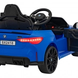 Stylové dětské elektrické autíčko BMW M4 v modré barvě nabídne realistickou jízdu s dvojicí motorů 2×35 W, 12V/7Ah baterií, otevíracími dveřmi a LED světly. Díky plynulému rozjezdu, pěnovým kolům EVA a dálkovému ovladači 2,4 GHz s bezpečnostním tlačítkem STOP je jízda pohodlná a bezpečná. Audio panel s Bluetooth, USB, MP3 a AUX potěší malé řidiče oblíbenou hudbou.