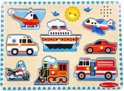 Zvukové puzzle pomáhají dětem rozpoznávat a učit se různé typy vozidel a jejich zvuky.