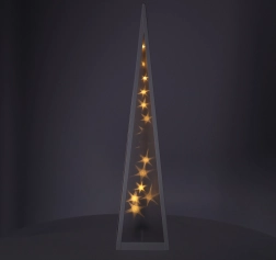 Tato elegantní LED pyramida o výšce 45 cm vytváří příjemnou sváteční atmosféru díky teplému bílému svitu a efektu rotujících hvězd. Minimalistický design v bílé barvě se snadno kombinuje s ostatní výzdobou a dodá interiéru moderní a útulný nádech.
