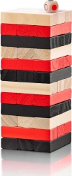 Stavte, vytahujte a balancujte. Barevné dřevěné kvádry a kostka přidávají nové výzvy a promění každé kolo v napínavou show.