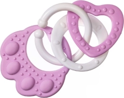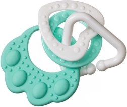 Kousátko je vybaveno různorodými tvary jako jsou kolečka, srdíčka a zvonečky, které nejen zabaví, ale také nabídnou úlevu od bolesti při růstu zoubků.