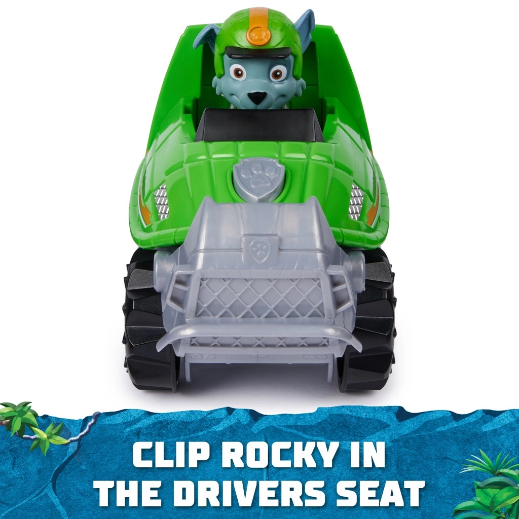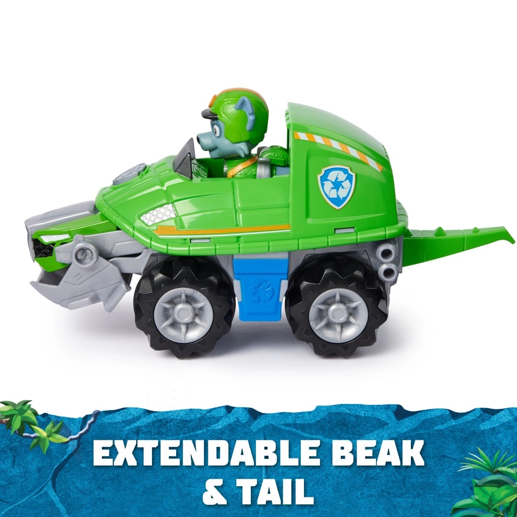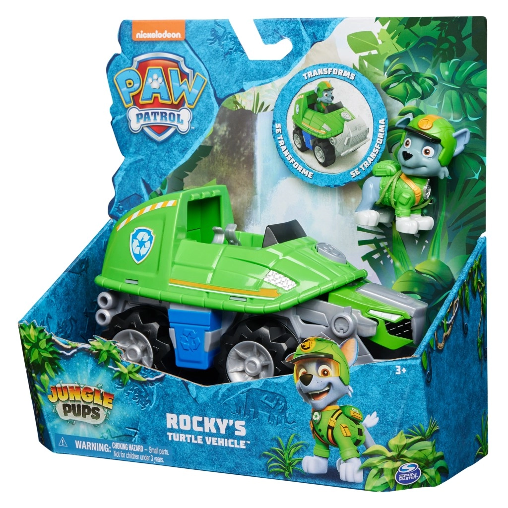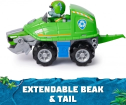 Vydejte se na akční mise s Rockym a jeho přeměnitelným vozidlem z kolekce Psi Patrol: Džungle. Jediným stiskem se vůz promění do záchranného režimu – odhalí zobák a ocas želvy, které pomohou překonat překážky. Skvělá hračka pro rozvoj fantazie a jemné motoriky dětí.