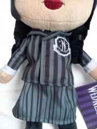 Objevte kouzlo oblíbeného seriálového hrdiny s naší stylovou plyšovou panenkou Wednesday Addams. Tato 32cm panenka je věrně vytvořena do dvou ikonických obleků: šedé školní uniformy Nevermore a extravagantních černých šatů, které měla na sobě na Nevermore Rave'N Dance.