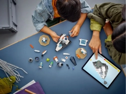 Děti mohou model snadno postavit a zkoumat ze všech úhlů díky 3D návodu v aplikaci LEGO Builder – přibližování, otáčení i vizualizace hotového modelu.