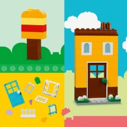 Tato pestrá sada přináší nekonečné možnosti volné hry. Postavte šest různých domů rozličných tvarů a výšek a pak je upravujte dle fantazie: měňte dveře, okna, střechy, zahrádky i další prvky. Děti mohou domky kombinovat, navyšovat patra a vytvořit i velký společný dům.