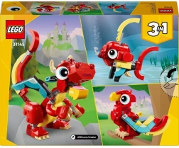 Objevte kouzlo stavebnice LEGO Creator 3v1 Červený drak, která dětem od 6 let přináší nekonečnou kreativní zábavu. Z těch samých kostek postavíte pohyblivého draka, nádherného fenixe s barevným peřím nebo elegantní rybku s pohyblivými ploutvemi. Každý model lze vystavit a díky bohaté kloubové pohyblivosti skvěle pózuje.