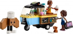 LEGO Friends Mobilní pekárna obsahuje dvě minifigurky, psí figurku a mnoho doplňků, jako jsou croissant, makronky, sušenky a další nástroje na vybavení pekárny. Tyto prvky inspirují děti k vytváření vlastních příběhů a podporují jejich kreativitu.