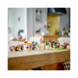 Postavte si barevné vozidlo s odpojitelným přívěsem a vydejte se na výlet do přírody. Děti si osvojí základy stavění a užijí si realistické scénky s přepravou koní.