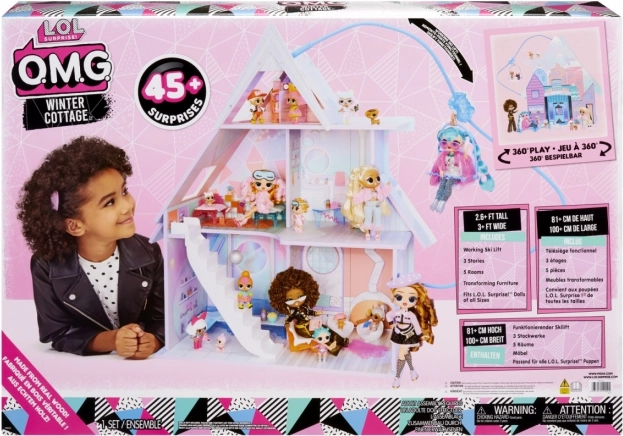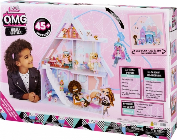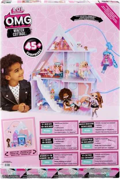Dopřejte dětem vlastní zimní svět s dřevěným domečkem L.O.L. Surprise! Winter Cottage. Otevřená konstrukce umožňuje pohodlný přístup do všech místností, barevné interiéry a funkční prvky (houpačka, lanovka a stylové pokojíčky) podněcují kreativitu a rozvíjejí jemnou motoriku i sociální dovednosti.