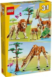 LEGO Creator 3 v 1 Divoká zvířata ze safari přináší dětem pestrý svět africké přírody. Z jedné sady dílků postaví majestátní žirafu s dlouhým krkem a pohyblivými klouby, kterou doplňuje plameňák a strom. Poté mohou model snadno přestavět na dvě antilopy (maminku a mládě) nebo na impozantního lva – vždy s doprovodnými prvky pro hraní příběhů.