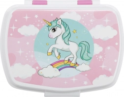 Praktický dětský box na svačinu s licencovaným motivem Unicorn je ideální do školy, na hřiště i na výlety. Je vyroben z odolného materiálu, který zvládne běžné pády a nárazy, neobsahuje BPA a víko zdobí atraktivní dekor, který si děti zamilují.