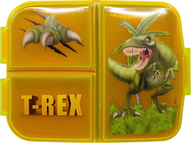 Tři samostatné přihrádky umožní přehledně oddělit ovoce a zeleninu, sendvič i malou dobrotu. Box je navíc univerzální – poslouží i pro uložení drobných hraček nebo dětských pokladů. Atraktivní dinosauří design s nápisem T‑REX potěší každého malého průzkumníka.