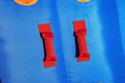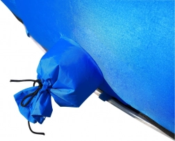 Přiložené kolíky a pásky pomáhají pevně zajistit atrakci k zemi, aby zůstala na svém místě.