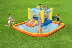 Nafukovací vodní skluzavka BESTWAY přináší dětem od 3 do 8 let spoustu akce na jednom místě: skákání, klouzání i cákání v mělkém bazénku. Robustní dvakrát prošívaný materiál zvyšuje pevnost, pružnost a životnost, zatímco síťované boční stěny pomáhají udržet malé dobrodruhy v bezpečí a pod dohledem.