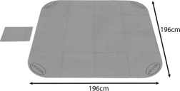Součástí je i samostatná podložka pod čerpadlo, která zajistí stabilní a bezpečné usazení topného/filtračního zařízení. Pokud máte větší vířivku než 196 × 196 cm, jednoduše spojíte více sad a získáte potřebnou ochrannou plochu.