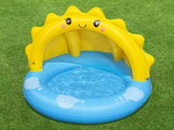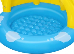 Bazének se může pochlubit veselým designem se žlutým sluníčkem a modrým pozadím obláčků, který zaujme každé dítě.