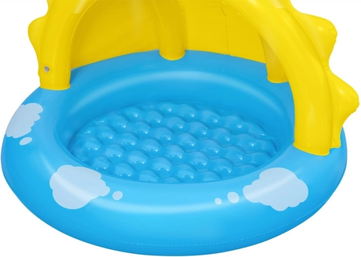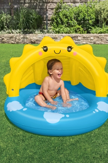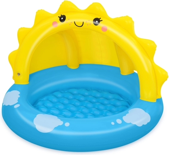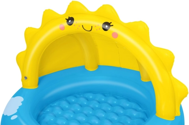 Nafukovací bazének se stříškou SLUNÍČKO je skvělou volbou pro první vodní hrátky dětí. Veselý design s usměvavým sluníčkem a obláčky nadchne malé plavce, zatímco integrovaná UV stříška poskytne příjemný stín. Měkké, texturované dno zvyšuje komfort sezení i bezpečí při hraní.