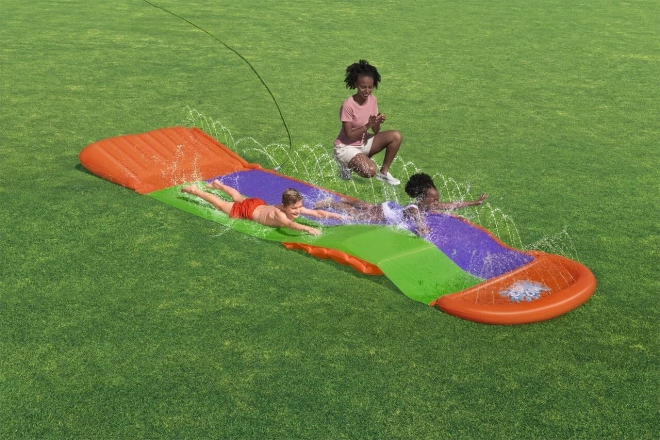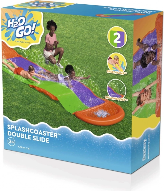 Skluzavka SplashCoaster od značky Bestway přináší zábavu ven na vaši zahradu! Díky dvouproudové skluzavce o délce 4,88 metru je ideální pro závody a skupinovou zábavu. Vodní spršky zajišťují plynulý a rychlý skluz.