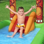 Bazén je vybaven vodními spreji ve tvaru dinosaurů a dalšími nafukovacími prvky, které vnesou více zábavy do každého slunečného dne.