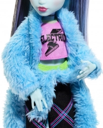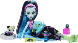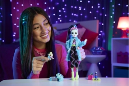 Panenka Frankie Stein z edice Creepover Party přináší dokonalou kombinaci módy a fantazie. Díky výrazným barvám, modrým pramenům ve vlasech a ikonickým bleskovým detailům si ji děti okamžitě zamilují. Set je plný drobných doplňků, které podněcují kreativní příběhy a stylové převlékání.