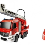 Tento detailně zpracovaný RC model MERcedes‑Benz Antos je vyroben na oficiální licenci a přináší dětem autentický zážitek ze hry. Díky jasným barvám, odolné konstrukci a funkčním efektům (přední a zadní světla, majáky na střeše) vypadá a chová se jako skutečný hasičský vůz. Integrovaný zásobník na vodu s hadicí a čerpadlem umožňuje stříkat vodu, zatímco otočná drabina 360° s výsuvem až cca 55 cm rozšiřuje dosah zásahu.