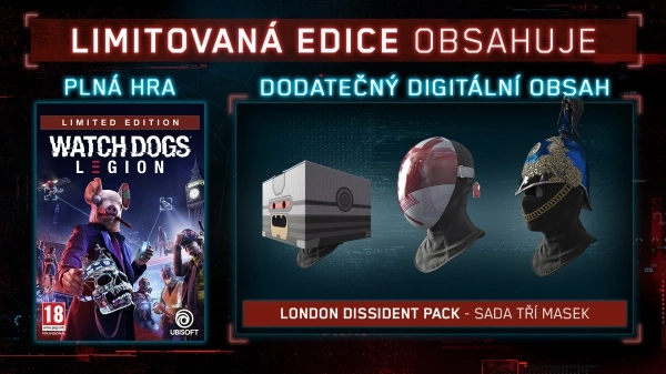PS4 Watch Dogs Legion Limited Edition: otevřený svět Londýna, hraj za kohokoli, hackování, drony, kooperace až pro 4 hráče. Exkluzivní masky a bonusy.