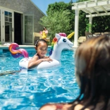Vyberte si mezi veselou lamou, pohádkovým jednorožcem nebo hravým dinosaurem. Barevné motivy zvyšují viditelnost ve vodě a děti je milují.