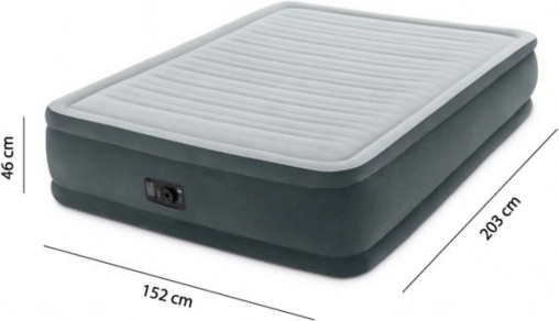 Nafukovací matrace Intex (203x152x46 cm) je ideálním řešením pro pohodlné spaní pro dva lidi doma nebo na cestách. Díky vestavěné elektrické pumpě dodává matrace výhodu rychlého nafouknutí za pouhé 3 minuty a snadného vyfouknutí za 1 minutu.