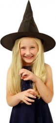 Tento čarodějnický klobouk má tradiční špičatý tvar a širokou krempu, což z něj dělá autentický doplněk ke kostýmu.
