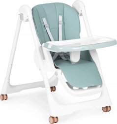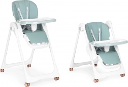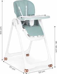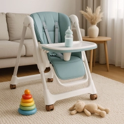 Dvojitý tác s vyvýšenými okraji a držákem na hrnek omezuje nepořádek a horní vrstvu po jídle jednoduše sejměte a omyjte. Potah z eko kůže stačí otřít vlhkým hadříkem. Kolečka s gumovým běhounem usnadňují přesun bez poškrábání podlahy a integrované pojistky kol židličku spolehlivě zafixují.