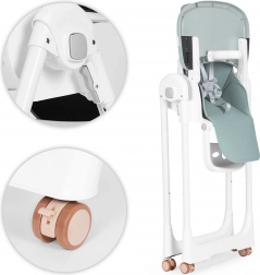 Jídelní židlička ECOTOYS roste spolu s dítětem: výšku sedáku snadno přizpůsobíte, opěradlo plynule sklopíte až do odpočinkové polohy a nastavitelná opěrka nohou zajistí ergonomické sezení. Pětibodové pásy a zámek mezi nožičkami brání sklouznutí a poskytují maximální pocit bezpečí.