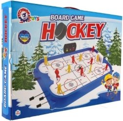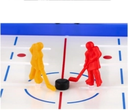 Komplet obsahuje vše, co potřebujete ke hře: hřiště, dva brankáře, dvě branky, dvě puky a deset hráčů. Díky kompaktním rozměrům 53 × 37,5 × 7 cm se snadno vejde na běžný stůl a rychle se připraví ke hře. Vhodné pro děti od 3 let i dospělé, kteří ocení snadná pravidla a dynamičtější hratelnost.