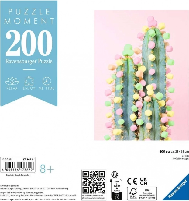 Dopřejte si chvilku klidu s puzzle RAVENSBURGER z kolekce Puzzle Moment. Motiv kaktusu a 200 dílků nabízí rychlé, relaxační skládání i po náročném dni. Kvalitní zpracování a přesné dílky zajistí příjemný zážitek pro začátečníky i pokročilé.