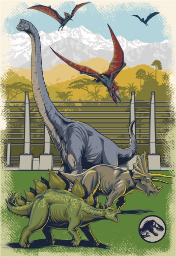 Motiv inspirovaný filmy Jurský park a Jurský svět přináší do dětského pokoje atmosféru dobrodružství, aniž byste museli vyrazit do zoo. Puzzle je navrženo tak, aby zaujalo barevností, srozumitelnými tvary a vzdělávacím přesahem.