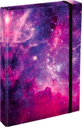 Praktické a odolné desky na sešity A4 Jumbo Galaxy jsou ideální pro každodenní nošení do školy. Horní a dolní klopa udrží sešity, pracovní listy i volné papíry bezpečně uvnitř, zatímco gumička zabrání nechtěnému otevření v batohu.