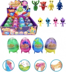 Tento zábavný třpytivý sliz v praktickém průhledném kelímku ukrývá malou figurku mimozemšťana, která potěší každé dítě. Sliz se příjemně natahuje, mačká a tvaruje, což podporuje kreativitu i smyslové vnímání. Díky kompaktním rozměrům je ideální na cesty i jako drobný dárek.