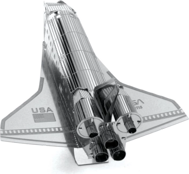 METAL EARTH Raketoplán Atlantis je precizní 3D kovový model vyřezávaný laserem. Ze čtvercového ocelového plátku o rozměru 11 × 11 cm poskládáte věrnou repliku legendárního orbiteru NASA s jemným rytím, tryskami a nápisy „United States“ a „USA“. Sestavený model je ideální jako sběratelský kousek i originální dárek.