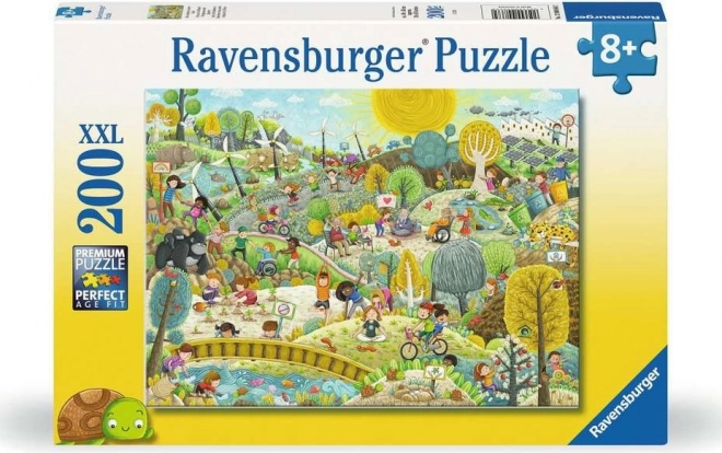 Puzzle Udržitelnost XXL od společnosti Ravensburger přináší fascinující výzvu pro všechny milovníky skládání. S rozměrem 49 x 36 cm po sestavení nabízí detailní obraz, který zaujme a potěší.