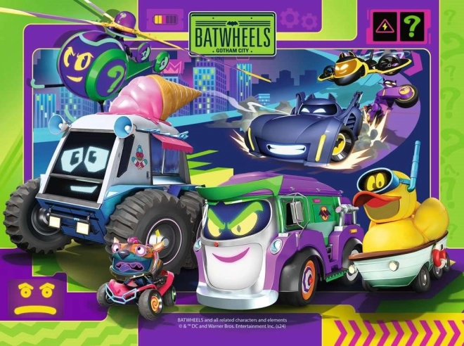 Užijte si hodiny zábavy a zároveň rozvoj logických schopností s naším Puzzle Batwheels 4v1. Tato jedinečná sada obsahuje čtyři puzzle s počtem dílků 12, 16, 20 a 24, což podporuje postupné zvyšování úrovně obtížnosti.