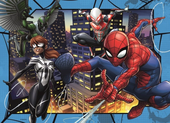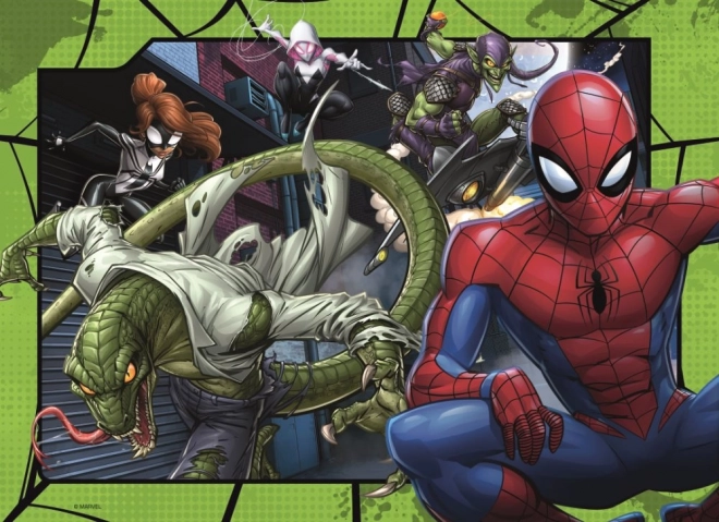 Puzzle Spiderman od značky Ravensburger přináší čtyři úžasné skládanky s oblíbeným hrdinou v jednom balení.