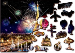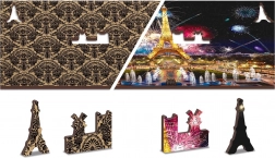Luxusní dřevěné puzzle s motivem noční Paříže a ohňostroje přináší jedinečný zážitek ze skládání. Unikátně tvarované dílky inspirované stavbami, předměty a zvířaty potěší každého milovníka originálních hlavolamů. Oboustranné provedení 2v1 umožní skládat jak podle barevného motivu, tak podle opakujícího se vzoru na rubové straně.