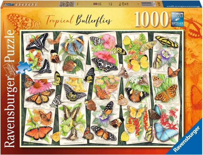 Objevte krásu exotické přírody s kvalitním puzzle RAVENSBURGER o 1000 dílcích. Díky přesnému výseku a odolnému kartonu je skládání plynulé a zábavné, a hotový obraz o rozměrech cca 70 × 50 cm vynikne jako dekorace. Prémiová kvalita, přesné dílky a nádherné barevné motivy tropických motýlů potěší každého milovníka puzzlí.