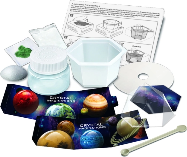 Po dokončení experimentu můžete krystal vystavit v průhledné vitríně s prostorovým motivem, takže poslouží i jako originální dekorace dětského pokoje. Sada rozvíjí trpělivost, pozorovací schopnosti a zájem o přírodní vědy.