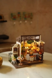 Vstupte do atmosféry útulné kavárny přímo u vás doma. 3D dřevěné puzzle RoboTime představuje detailní dioráma s barovým pultem, stoličkami, rostlinami, nápisy a doplňky, které společně tvoří harmonický celek. Díky promyšlené konstrukci z kvalitního dřeva je model pevný, přesný a po sestavení skvěle vypadá jako dekorace či sběratelský kousek.