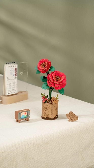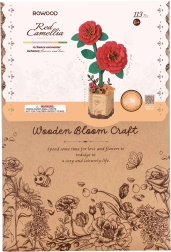 Tato elegantní 3D dřevěná skládačka vytváří detailní model červené kamélie v květináči. Díly z kvalitního, ekologického dřeva do sebe přesně zapadají a model po dokončení skvěle poslouží jako stylová dekorace na stůl, poličku či do pracovny.